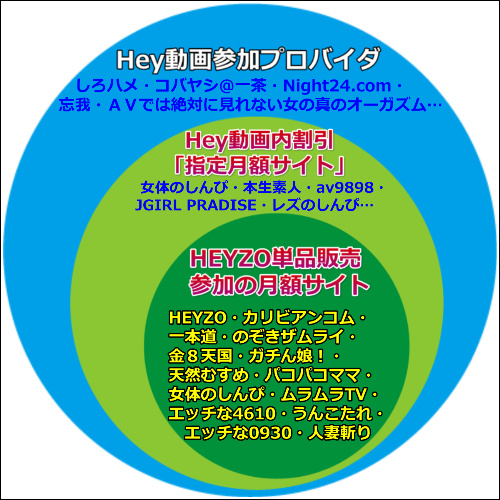 Hey動画参加プロバイダ ∋ Hey動画割引「指定月額サイト」 ∋ HEYZO単品販売参加サイト